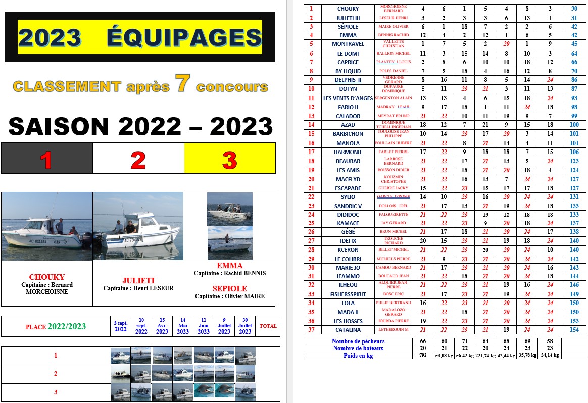 Résultat Final Concours 2023 Publié parAPPBAadmin9 septembre 20224 septembre 2023Publié dansNon classé RÉSULTATS CONCOURS INDIVIDUEL 2023 H/F Individuel 1 Individuel 2 Individuel 3 Individuel 4 Individuel 5 RÉSULTATS CONCOURS FÉMININ 2023 Individuel 1 Individuel 2 Individuel 3 Individuel 4 Individuel 5 RÉSULTATS CONCOURS ÉQUIPAGE 2023 Équipage 1 Équipage 2 Équipage 3 Équipage 4 Équipage 5 Équipage 6 Équipage 7 CLASSEMENTS GÉNÉRAUX 2023 CLASSEMENT GÉNÉRAL FÉMININ 2023 CLASSEMENT GÉNÉRAL INDIVIDUEL 2023 H/F CLASSEMENT GÉNÉRAL ÉQUIPAGE 2023 Similaire
