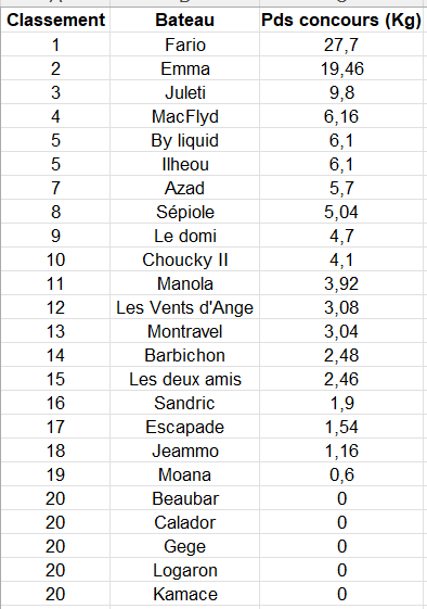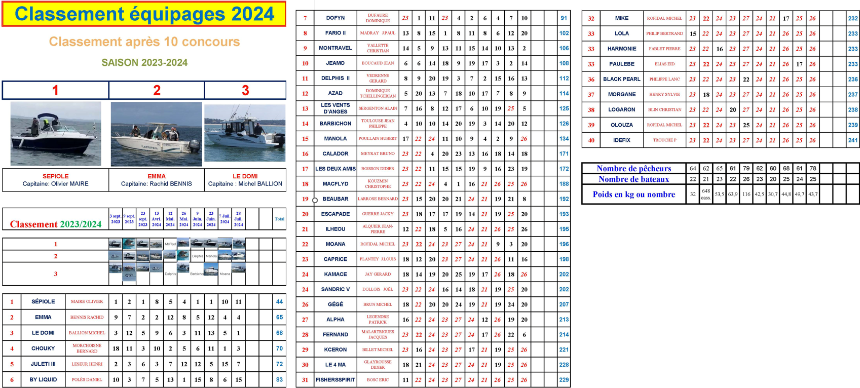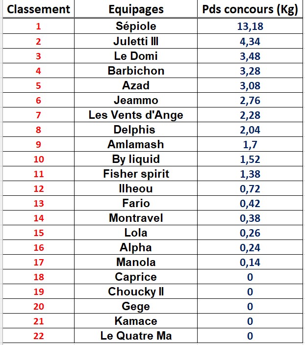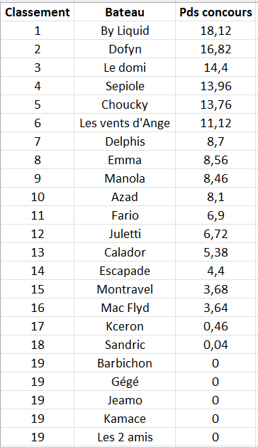 Résultats Final Concours 2024 Publié parAPPBAadmin4 septembre 202313 mars 2025Publié dansNon classé Challenge d’automne Challenge Pierre Blanc Challenge du Courbey Challenge de Printemps Challenge Colette Goupe Challenge de l’aiguillon Challenge Saint Yves Challenge de l’été Challenge de la Maison de la Mer Grand Prix de la Ville d’Arcachon CLASSEMENT GÉNÉRAL ÉQUIPAGE 2023-2024 Similaire