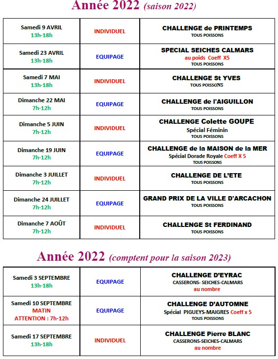 RDV le 3 juillet prochain pour le challenge de l’été, concours individuel tous poissons !