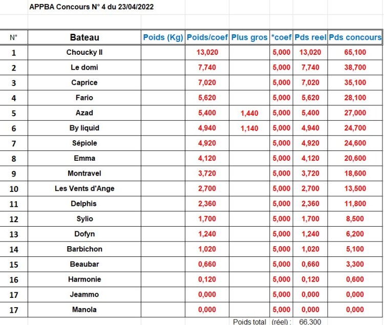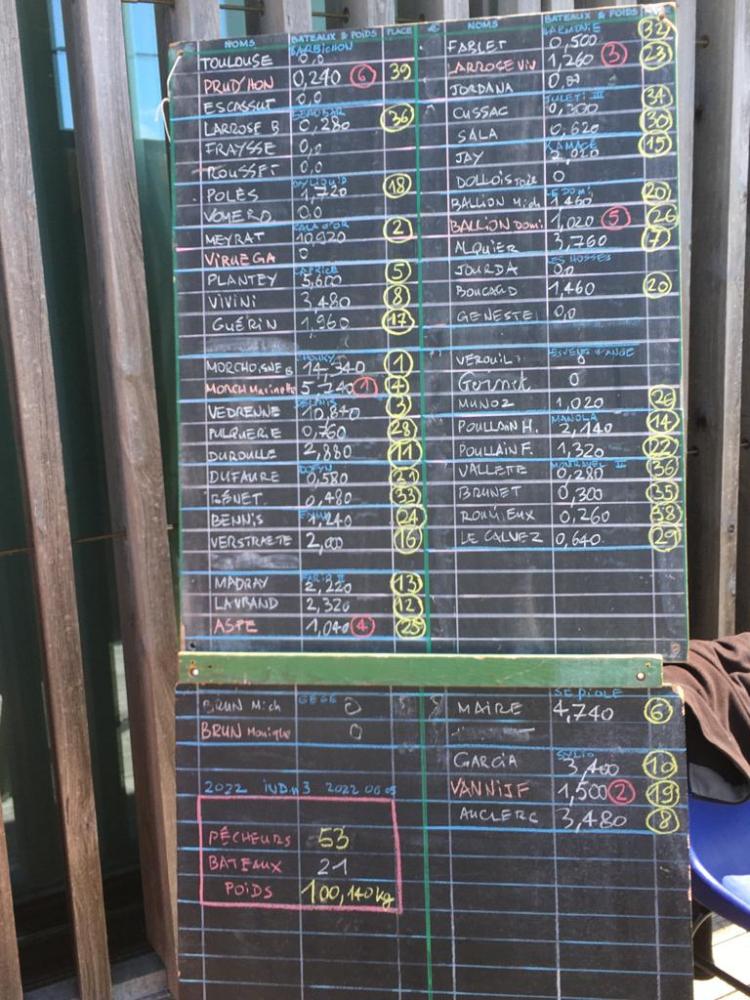 Résultat du challenge de l’été, concours individuel tous poissons du dimanche 3 juillet !