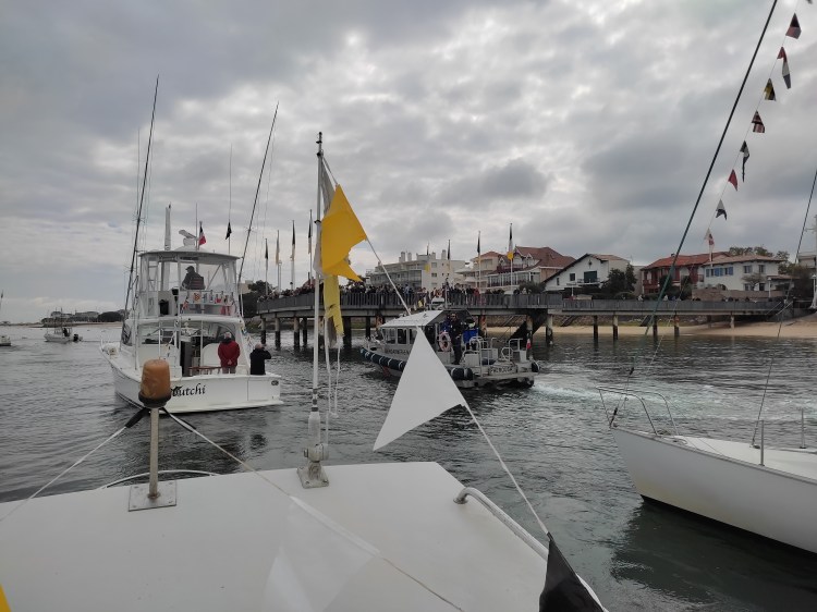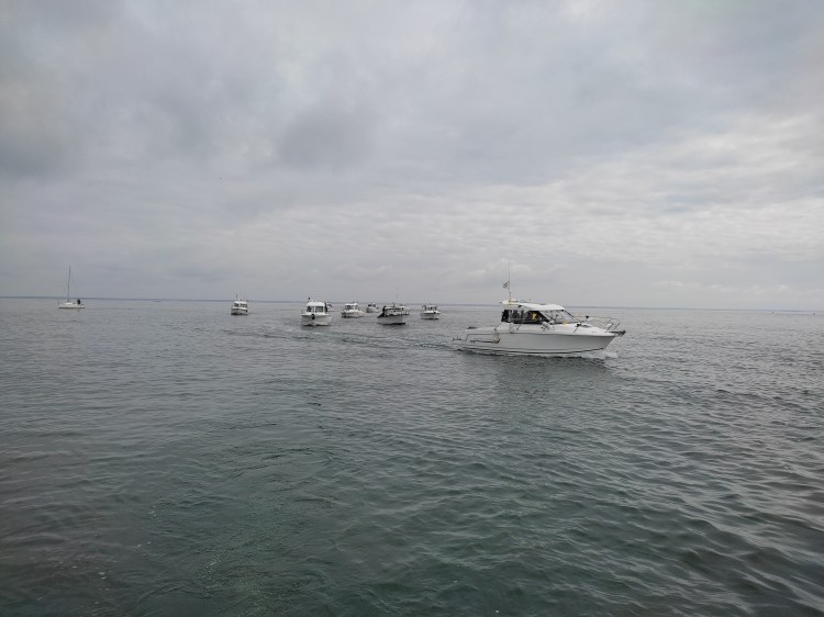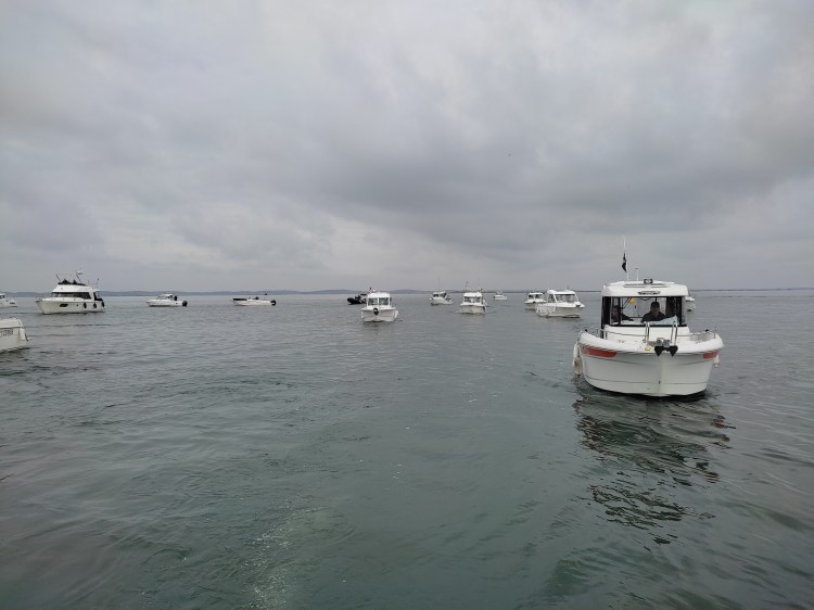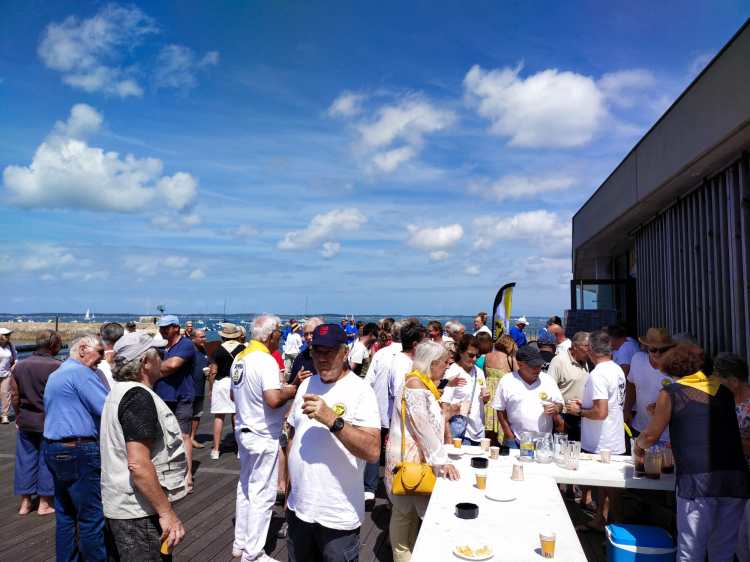 Très forte participation des bateaux des adhérents de l’APPBA décorés aux couleurs de la Ville et porteurs du fanion du Club pour la bénédiction des péris en mer à la jetée de la Chapelle des Marins