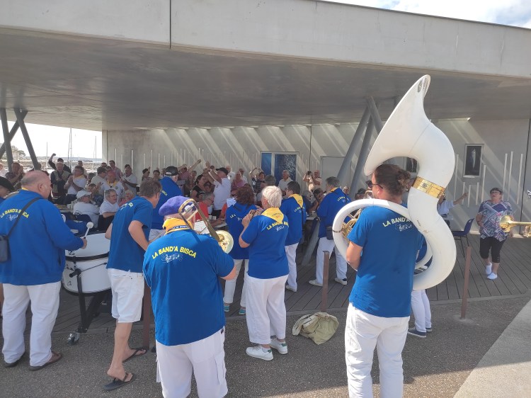 Magnifique procession des bateaux pavoisés pour la rentrée au port après concours sous la musique des Bandas ! Concours suivi du repas paella toujours en musique avec tirage du loto au profit de la SNSM !