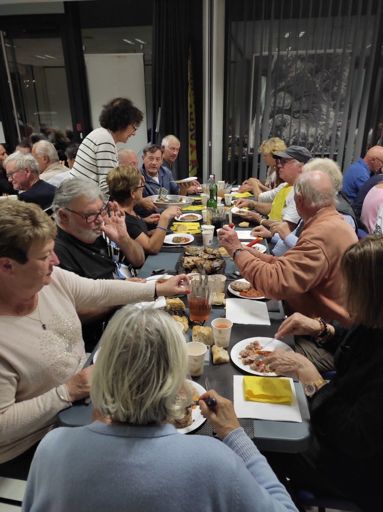 Suivi de notre traditionnel repas thon avec près de 90 participants ! bravo à nos deux cuistots Daniel et Michel et à l’équipe animations, Claude, Josette, Josiane, Viviane et j’en oublie! pour la préparation et pour servir tout ce petit monde affamé !